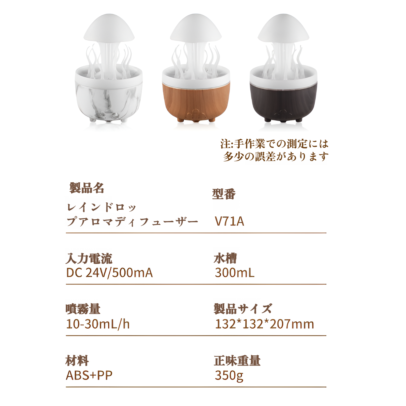 JMY 回転クラゲ レインドロップ エッセンシャルオイル アロマセラピーディフューザー ホーム カラフル ナイトライト