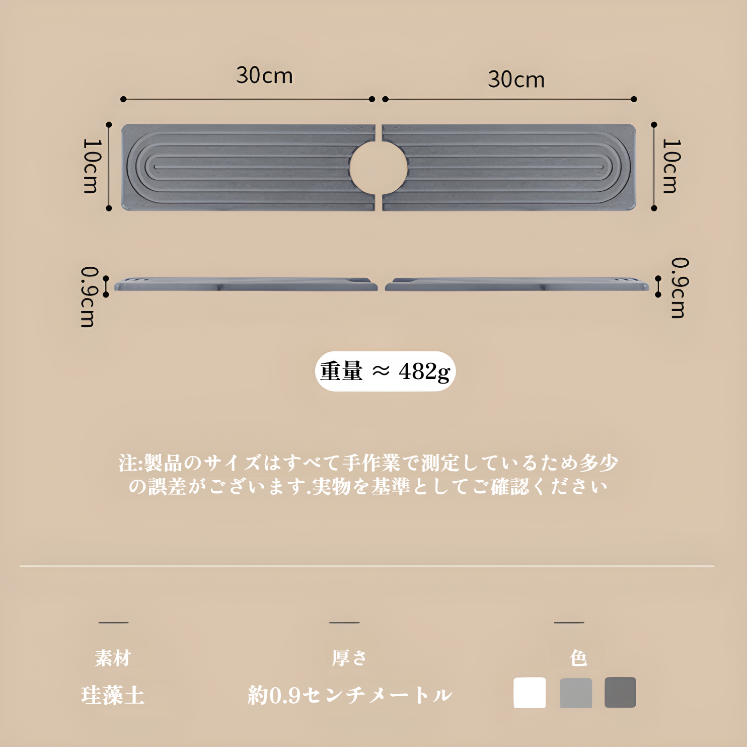 蛇口水切りマット 珪藻土トレー 速乾タイプ