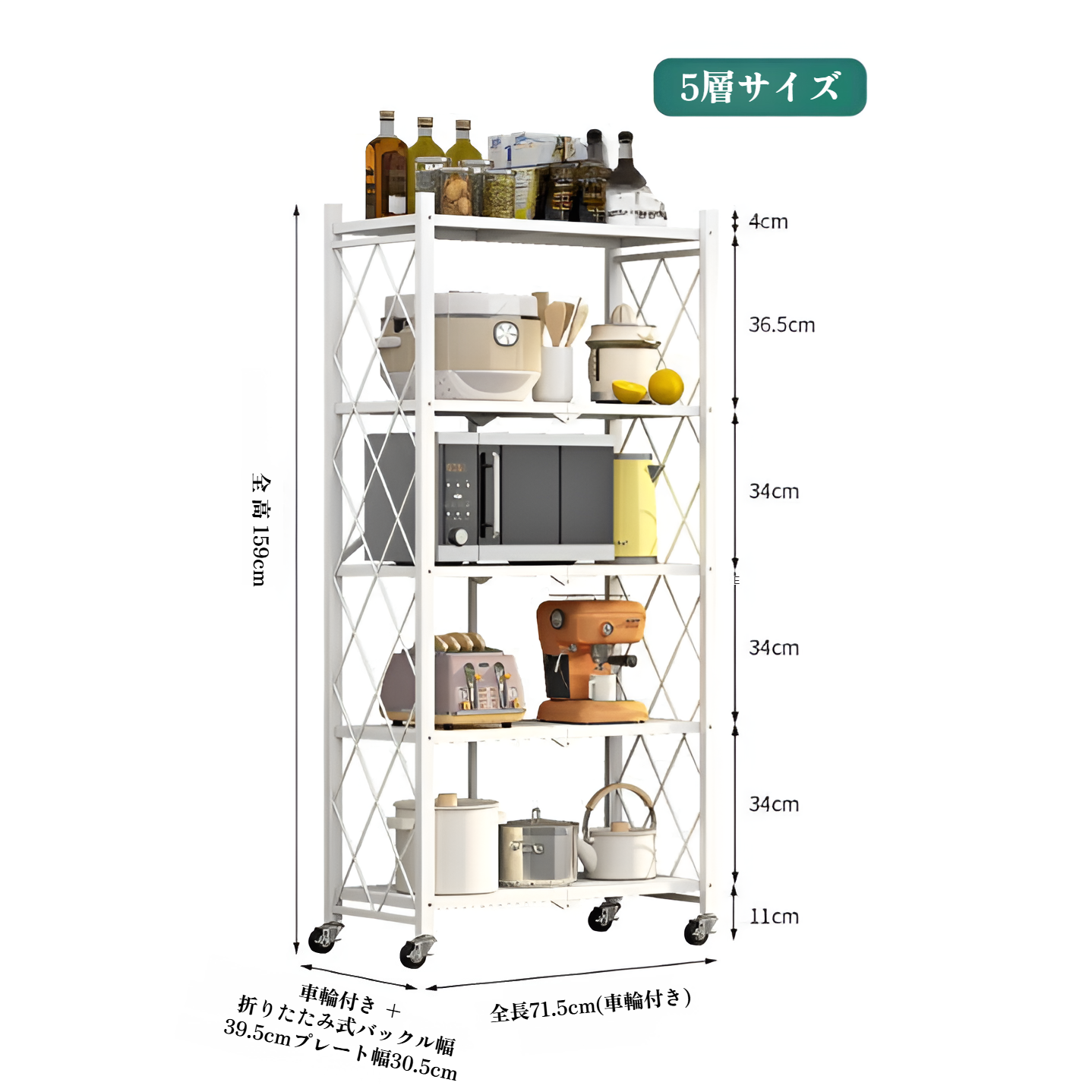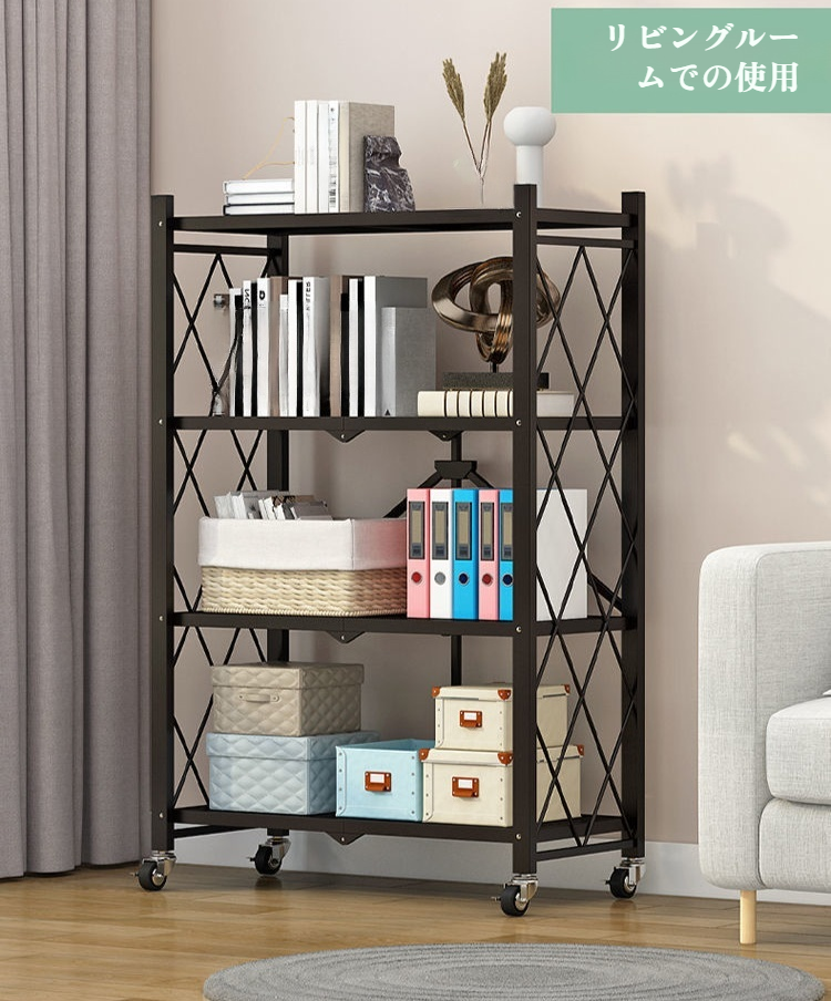 メタル製ラック 折りたたみ式 スチールラック キャスター付き 収納ラック 錆止め加工 収納棚 折りたたみ式 黒 ブラック 組み立てが簡単 スチール棚 頑丈 メタルシェルフ リビング ワイヤー シェルフ